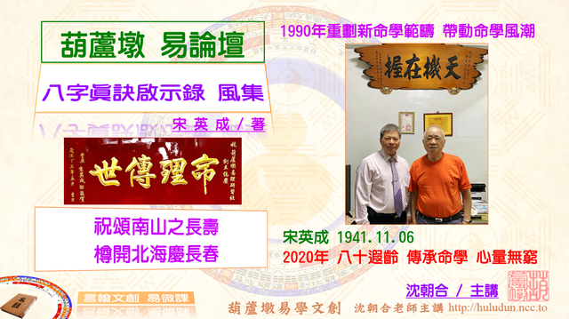 今製作影音視頻分析心得,並介紹新著作《滴天髓菁萃》,歡迎閱覽。(葫蘆墩 沈朝合2020.12.28)