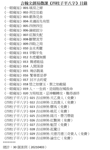 ■四柱子平八字 2020.09.08 已開課(每週二)上課人數31人