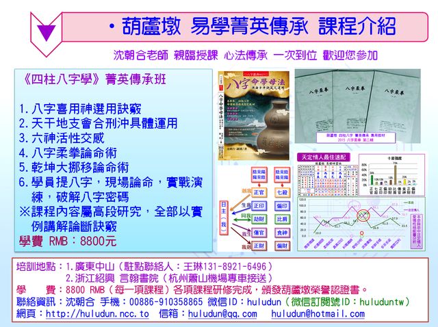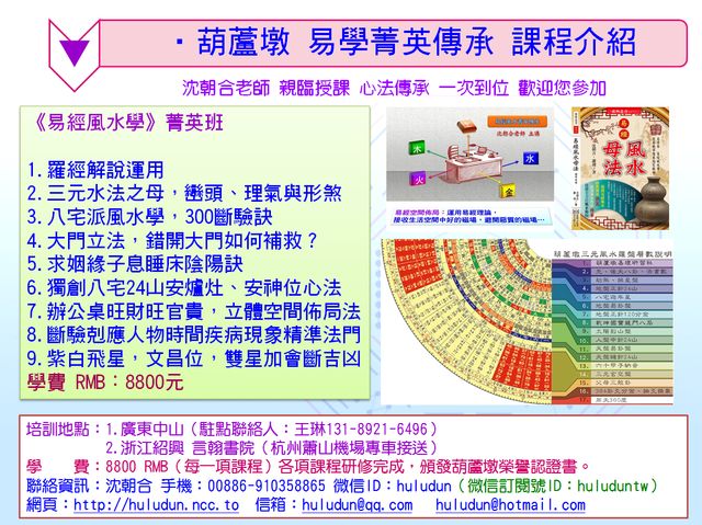 ※ 葫蘆墩易學菁英傳承培訓已經開始報名了,歡迎您參加