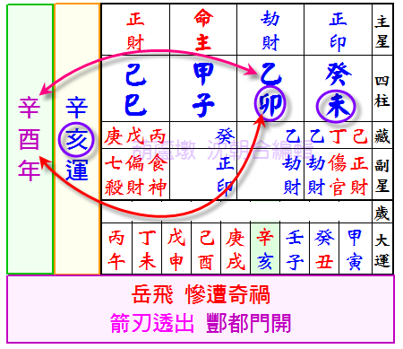 岳飛八字,癸未年乙卯月甲子日己巳時(附圖一)