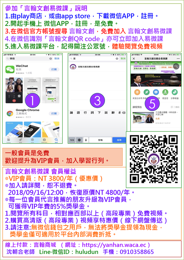 初次使用微信APP,參加「言翰文創易微課」說明