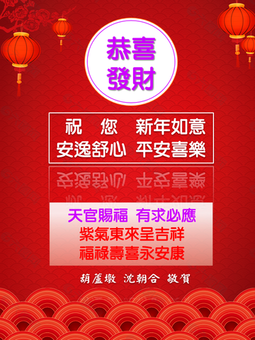 2021歲次辛丑 恭喜發財天官賜福,有求必應 Posted on 2021 年 02 月 11 日 由 huludun 我親愛的學員、親朋好友 2021歲次辛丑 恭喜發財 祝您 闔家 安逸舒心,平安喜樂 天官賜福,有求必應 紫氣東來呈吉祥,福祿壽喜永安康 利好曉日騰雲起,財源更比水流長 葫蘆墩 沈朝合 敬賀