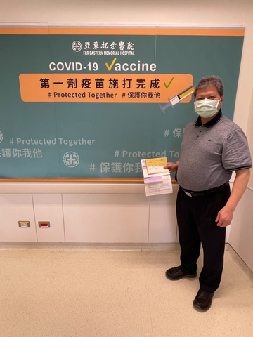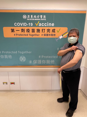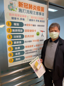 沈朝合完成疫苗第一劑接種