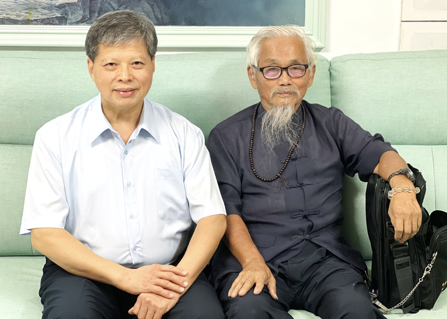 《乾坤國寶菁萃》作者沈朝合與第六十五代傳人陳河舟合影