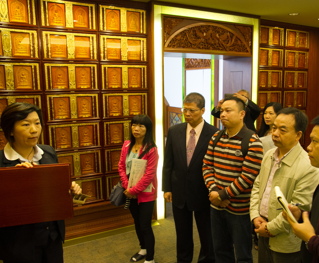 浙江紹興學員訪台,參訪台北金山 蓬萊陵園 祥雲觀止 Posted on 2014 年 11 月 26 日 由 huludun 浙江紹興學員訪台,參訪台北金山 蓬萊陵園 祥雲觀止 蓬萊陵園祥雲觀止,地下一層地上八層使用面積高達8000坪,由名家大師精心打造,外型仿中國宮殿式造型,八卦花格窗及採光透光罩、引天光直射正殿神佛,充滿法喜。 緣由: 紹興平陽寺增建山門、天王殿、財神殿、萬佛靈塔,應邀擔綱風水師,主庚佈局定分金。學員代表平陽寺,參訪蓬萊陵園祥雲觀止。(葫蘆墩 沈朝合)