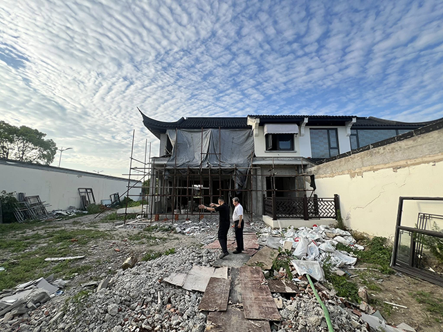 杭州綠城桃花源,整個園區都是高級別墅,綠意盎然,空氣清新,中式、法式屋型樣式多樣又高雅。客戶剛購買了桃花源二手別墅,邀約鑑定,準備將原來的建築全部拆掉重新規劃設計重建佈局。門口安了石敢當石柱,看來原屋主也邀了風水師看過風水,可惜並未查覺這風水寶地就錯在那「分金差一線」,原屋主敵不過風水折磨,落得必須售屋收場。
