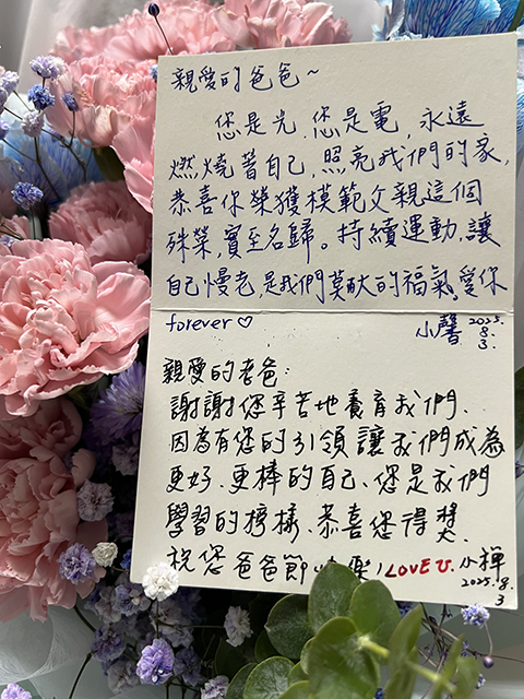 今日獲頒「模範父親」殊榮,心中充滿感激與謙卑。